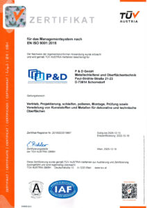 Im Zentrum der P & D GmbH steht die Veredelung von Oberflächen mit verschiedenen Verfahren und Prozessen im Bereich der Oberflächentechnik für die unterschiedlichsten Werkstoffe.